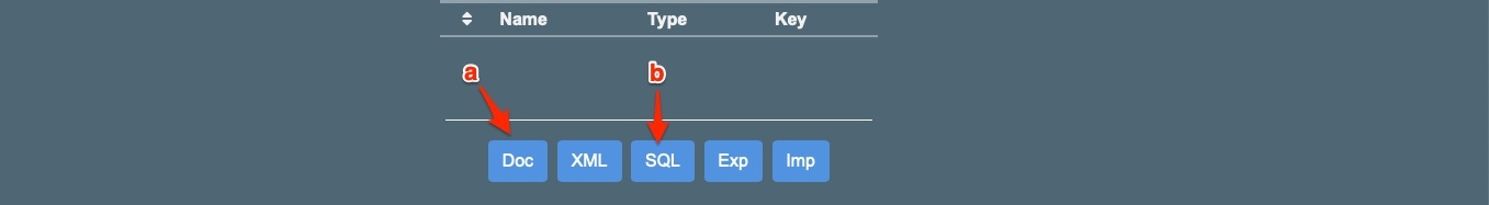 Click on the "SQL" button (a) to generate the Create Table SQL command for the configured table. These code could be used to create the table in the database if these has not been created yet.
