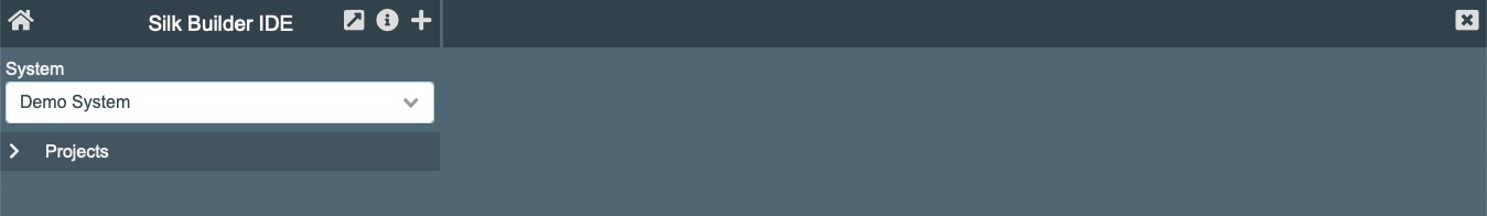 Once the "System" and the "Target Hosts" has been configured then we are ready to start the Silk Development process. This starts by clicking the Project button in the Dashboard screen which provide access to the Silk Builder IDE application.