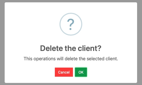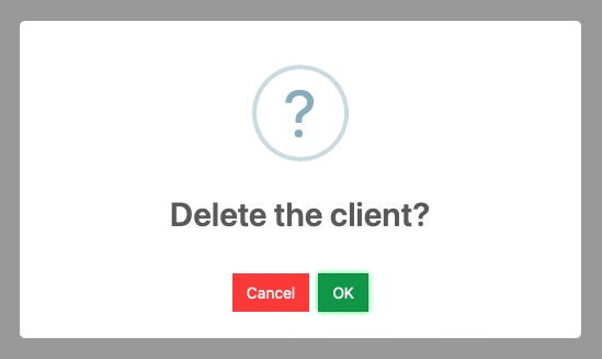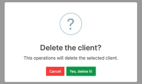 The next is an example of setting the property confirmation's title as "Delete the client?" and leaving the other properties as default.
