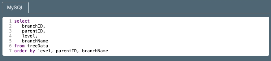 This method is limited only to the application implementing it. This situation is not convenient if the data tree gets used in multiple applications. Also, if the SQL select returns many records, this method adds an extra processing step. This method can also create conflict with encrypted columns. Use this with caution.